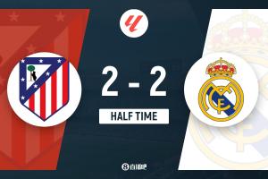 半场-马竞2-2皇马 姆巴佩单刀破门居勒尔传射索尔洛特头球建功