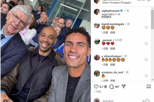 体育资讯10月21日讯 瓦拉内更新社媒动态,晒出与温格、亨利的合照。